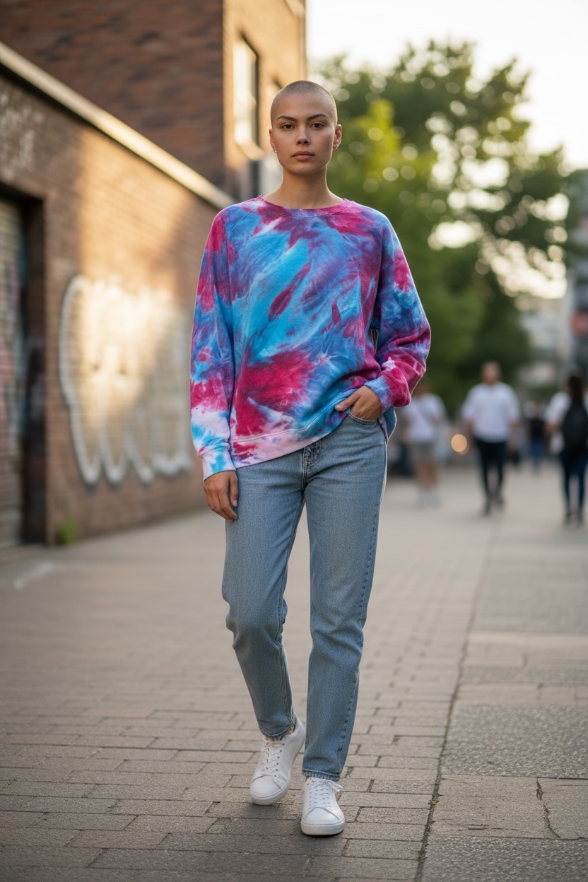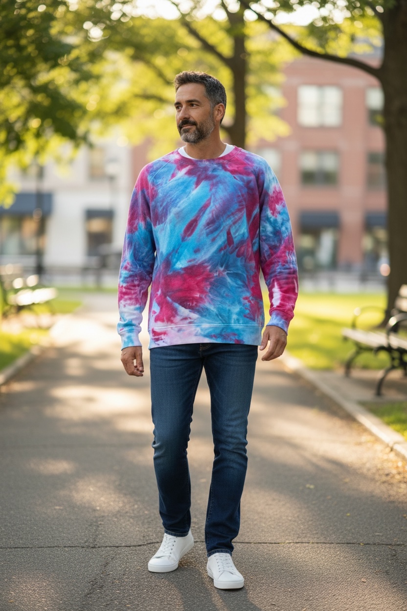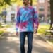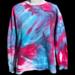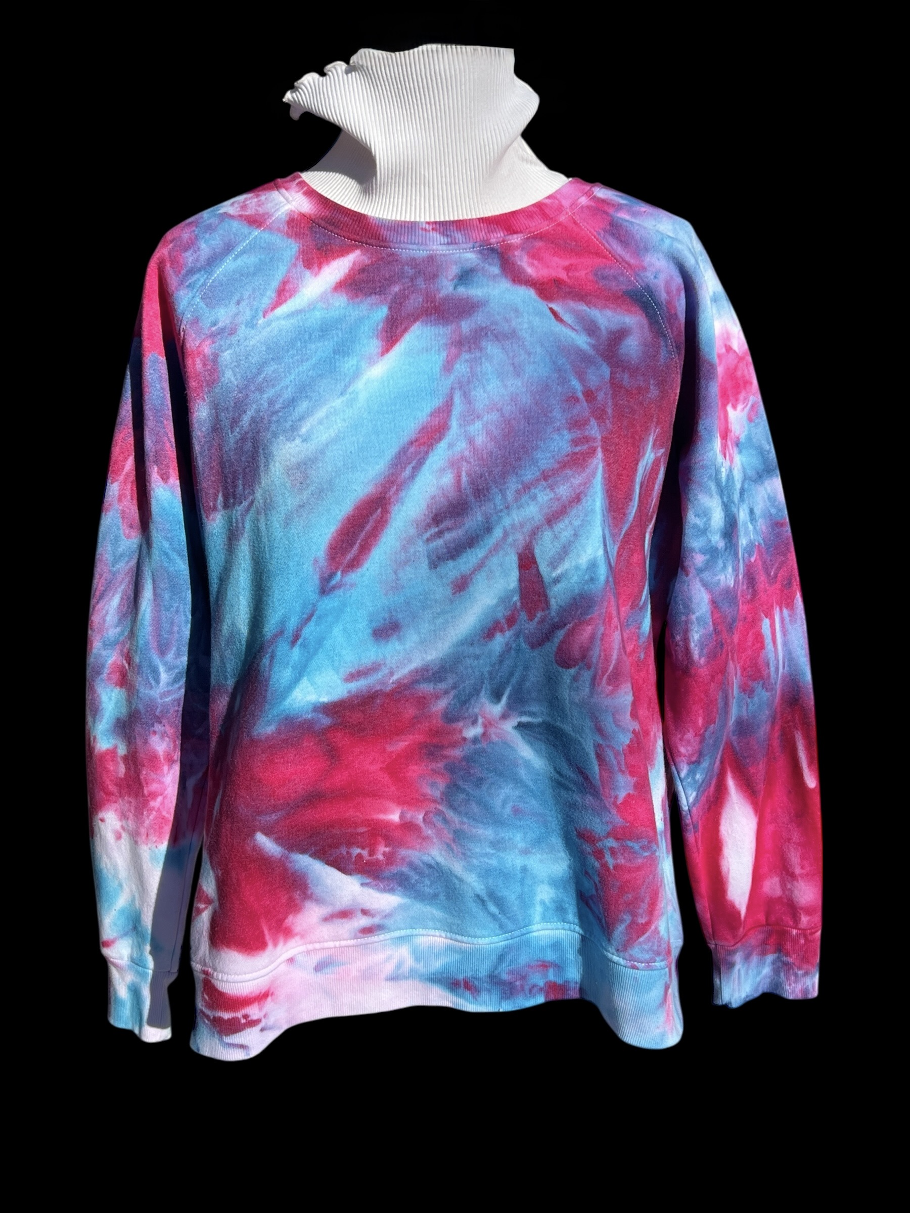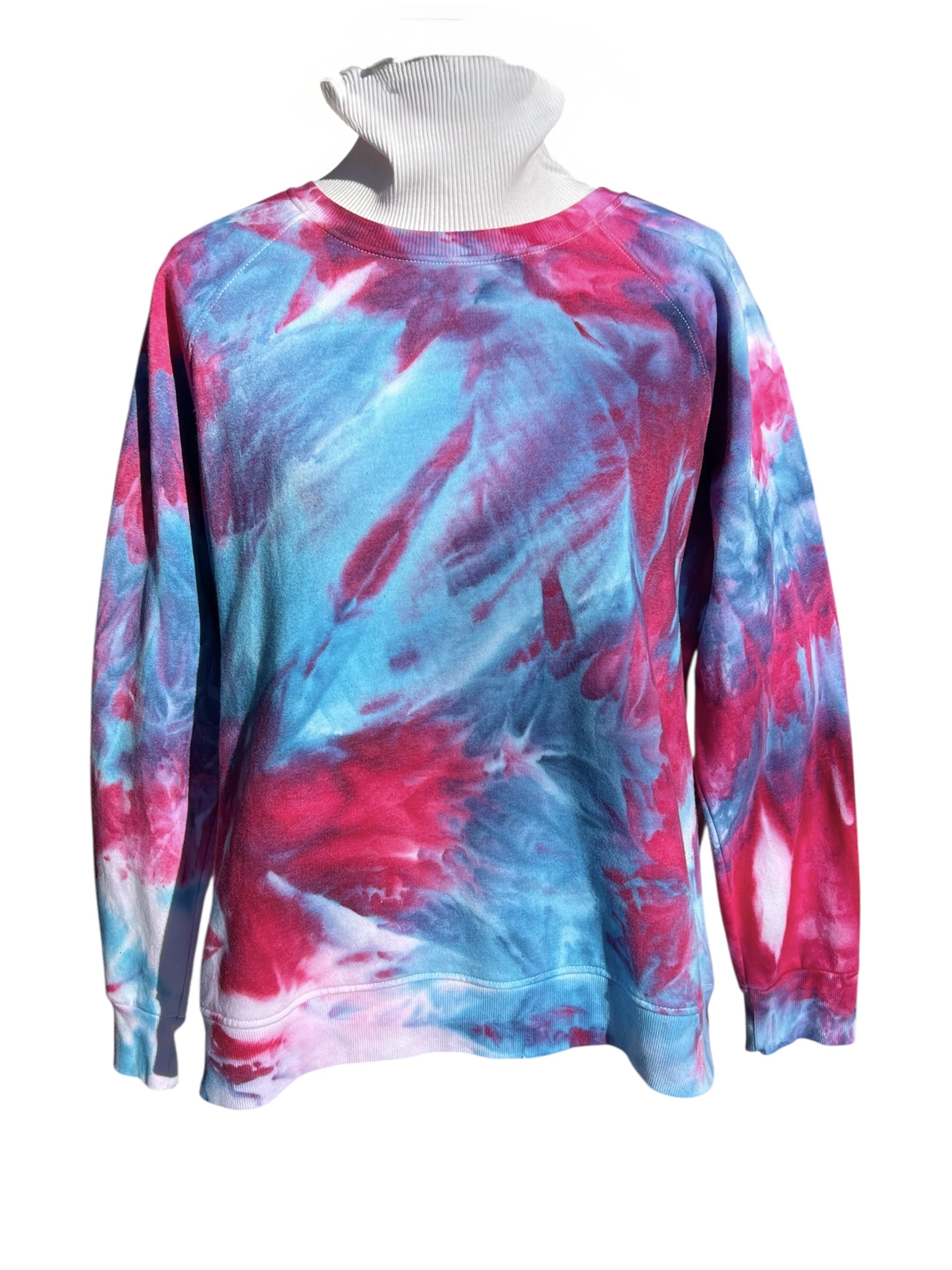 Ice-dyed, not tie-died! One of a kind sweatshirt, individually dyed by hand. A very soft cotton/poly blend in soft blues and reds. Gorgeous patterns!