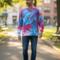 The ice creates beautiful, soft and random patterns. I usually choose 4-6 colors, though occasionally I surprise myself with just 2. The colors separate due to the ice and blend with each other to form unique, one of a kind patterns. Ice dyeing is great for those individuals who love color and who aren’t afraid to stand out in a crowd.